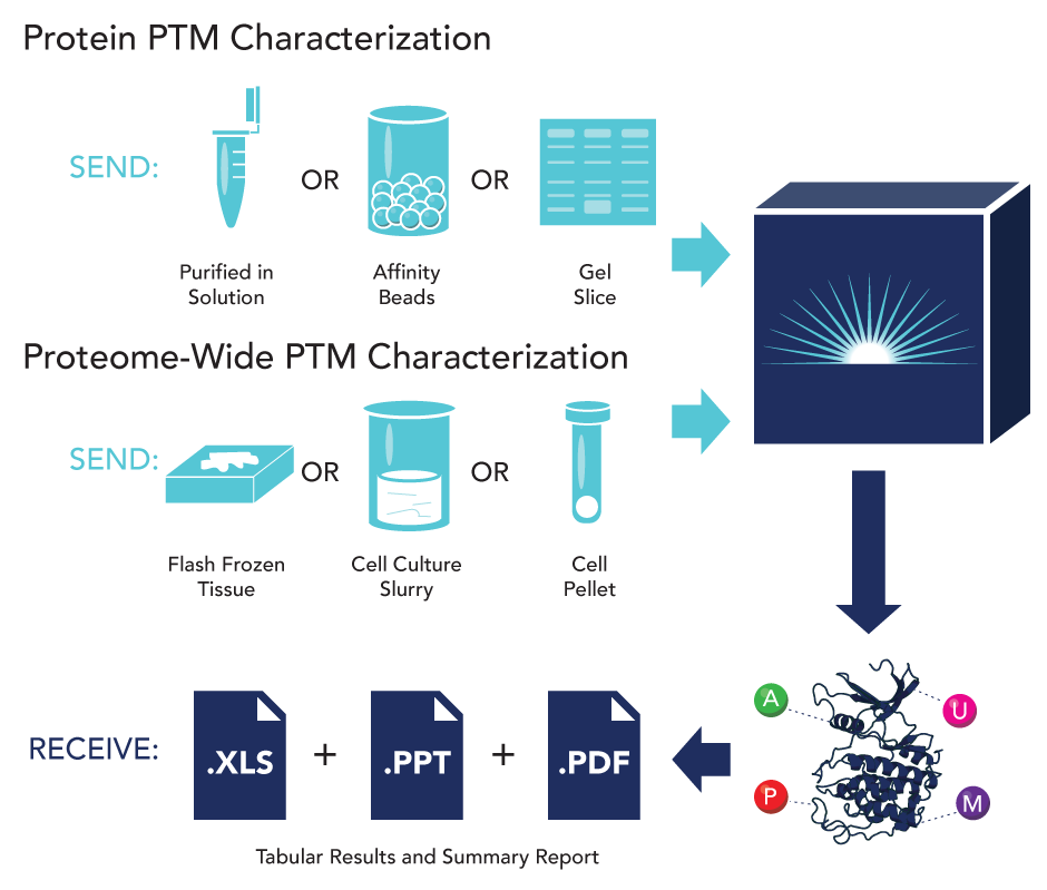 Protein post-translational modifications can modulate the range of activities and alter the interactions of proteins within a cell’s proteome. Protein PTMs allow for a variety of modified cell function including varied signaling processes, cellular differentiation, and gene expression regulation. Modifications such as phosphorylation, acetylation, methylation, and ubiquitination are added or removed from key proteins in response to disease states or drug treatment conditions. A critical step in understanding these dynamic changes within the proteome is to establish a routine method to access and identify the wide variety of PTMs that are present in the cell.